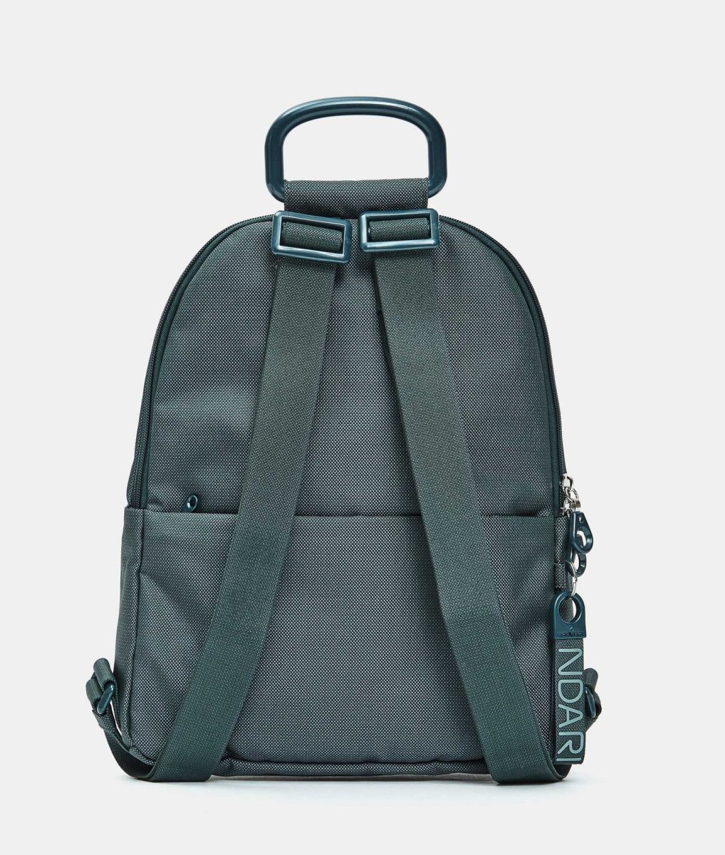 Zaino con manico e tasche laterali con zip in tessuto. Dettagli personalizzati e spallacci regolabili in jacquard.