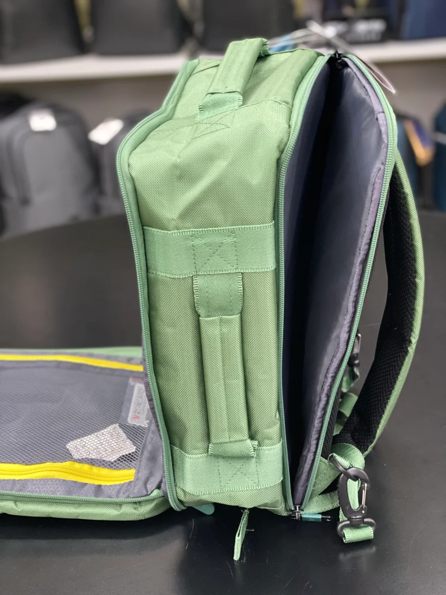 Comodo zaino multitasca a norma per essere portato a bordo dei voli Ryanair.