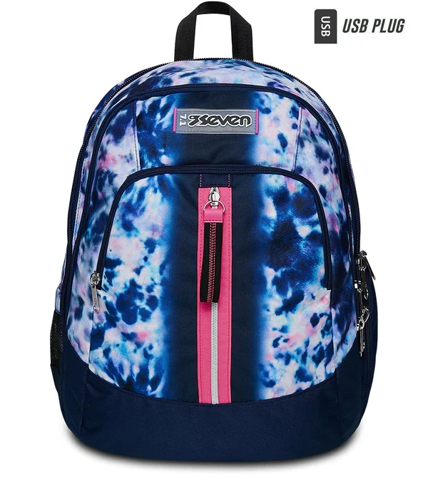 - Zaino doppio scomparto con USB PLUG laterale, apertura dello scomparto principale facilitata e nuova etichetta in gomma personalizzata con logo SEVEN.