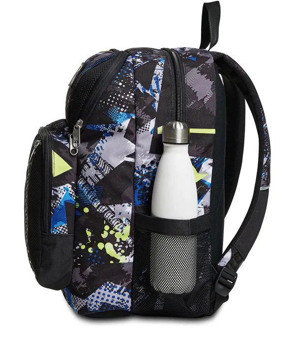 - Tasca frontale chiusa con zip, tasca laterale in rete porta borraccia