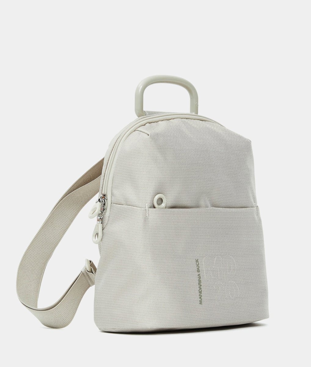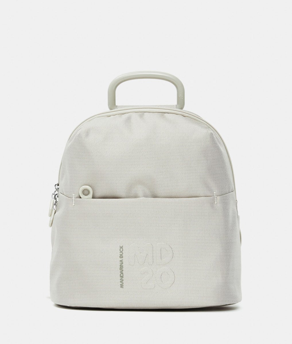 Zaino mini con manico con zip doppio cursore e tasca frontale in tessuto.