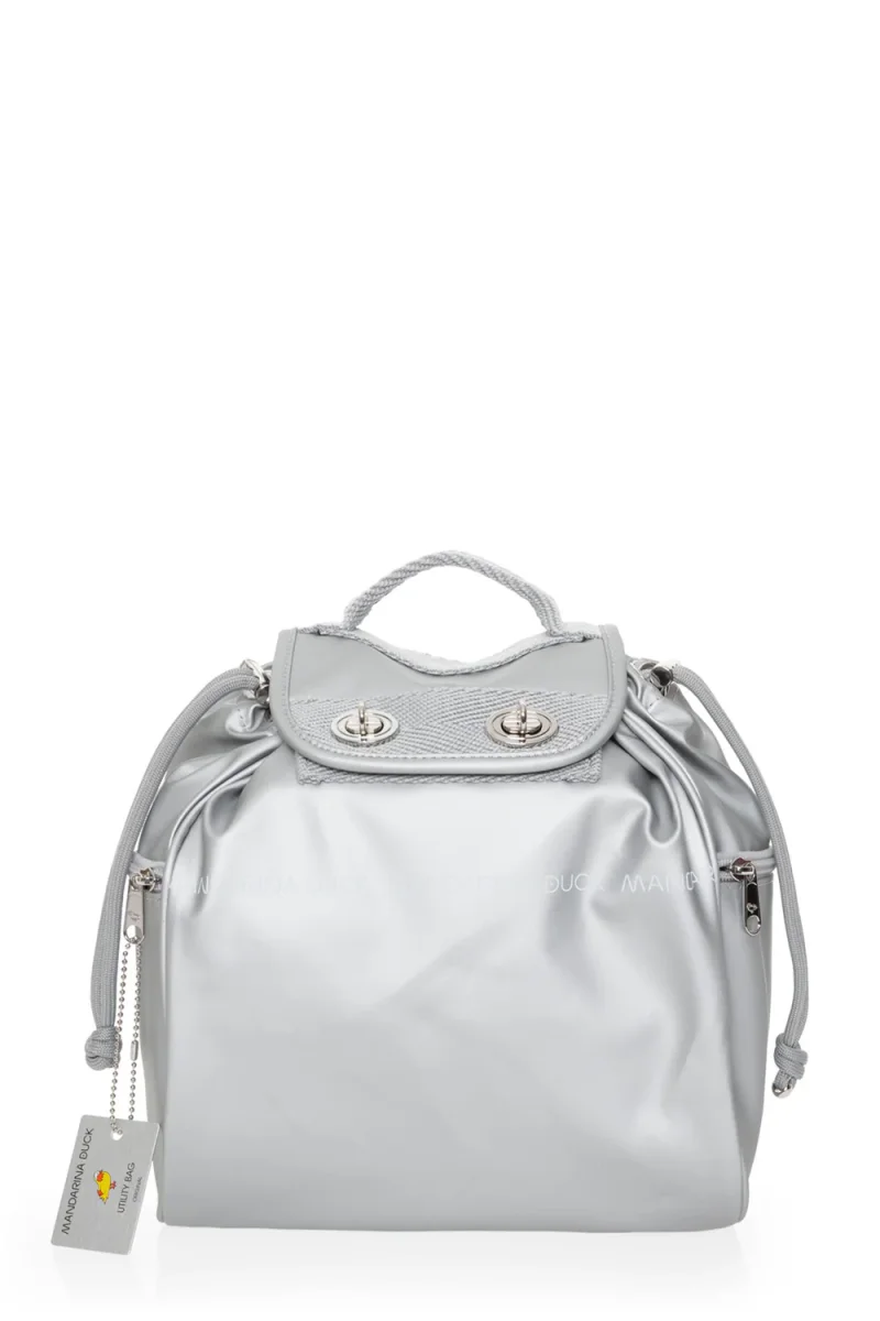 Versione small dello storico del marchio Mandarina Duck realizzato in materiale dalla superficie gommata, molto morbido al tatto. Dotato di tag personalizzato in alluminio opaco. Completamente foderato con fodera logata all over. Leggero, pratico e colorato adatto ad ogni occasione.